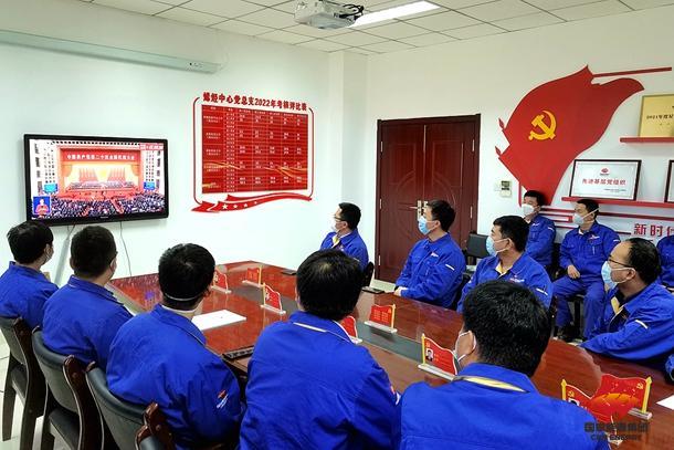 包头化工党员在党建活动室集体观看中国共产党第二十次全国代表大会开幕会盛况。
