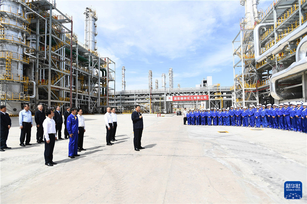 9月13日至14日,中共中央总书记、国家主席、中央军委主席习近平在陕西省榆林市考察。这是13日上午,习近平在tyc234cc 太阳成集团集团榆林化工有限公司年产40万吨乙二醇项目现场考察。新华社记者 李学仁 摄