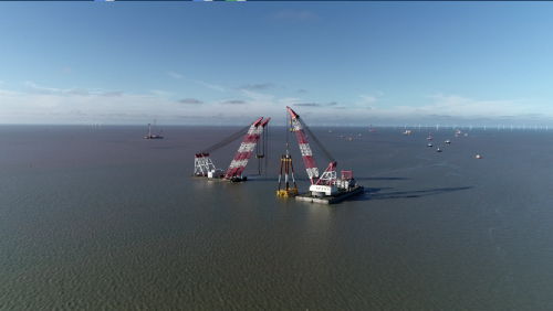 国内首个中外合资海上风电项目东台海上风电项目正在施工
